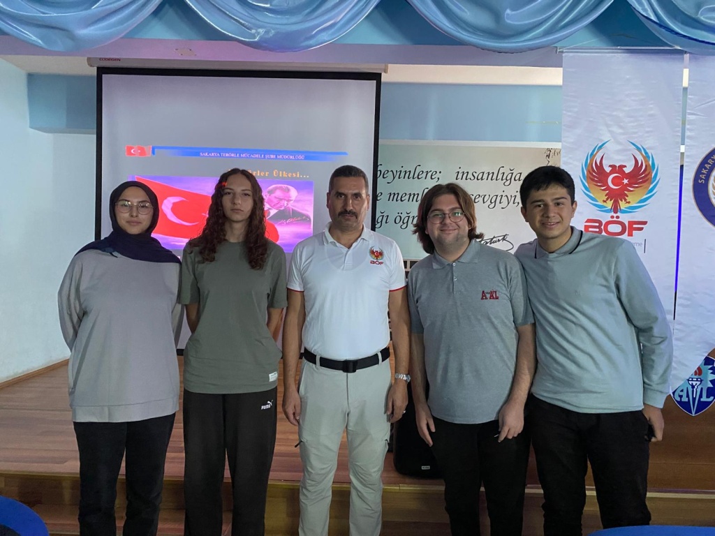 Sakarya Emniyet Müdürlüğü Terörle Mücadele Şube Müdürlüğü Bilgilendirme ve Önleme Faaliyetleri Büro Amirliği tarafından, terör örgütlerinin eleman temin etmesini engellemek ve terör konusunda farkındalık oluşturmak amacıyla, Çok Amaçlı Konferans Salonunda, okulumuz öğrencilerine bilgilendirme semineri verilmiştir... Öğrencilerimizin pür dikkat izledikleri görülmüş ve gerekli bilincin kazandırılması için gerekli olan eğitimin başarıya ulaştığı gözlemlenmiştir.. Donanımlı Polis Memurlarınca verilen eğitim, gençlerimizin sağlam zeminde hareket etmeleri ve ülkemizin geleceğini emanet edeceğimiz gençliğe yol göstermesi açısından önem arz etmektedir... Seminerin hazırlanmasında ve sunumunda emeği geçen idareci, öğretmen ve Polis arkadaşlarımıza teşekkür eder, kendilerine minnettarlığımızı sunarız...